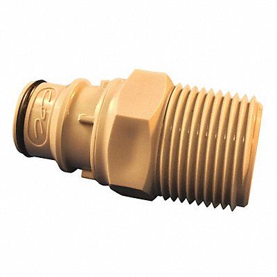 Coupler Application Air Non-Potable Water Fitting Side A Connection Type Insert Fitting Side B Connection Type MNPT Flow Control Type Shut-off Fitting Side B Pipe Size 3/4 in Fitting Material Polypropylene Overall Length 2 1/4 in Specific Fitting Shape Straight Coupler Standards FDA Approved RoHS USDA Color Gray Hex Size 1 1/16 in Maximum Operating Pressure 60 psi Maximum Operating Temperature 160 Degrees F Minimum Operating Temperature 32 Degrees F