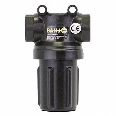 Inline Strainer Material Polypropylene Connection Type NPT Bowl Color Black Pipe Size 3/4 in Maximum Pressure at 100 deg F 206 psi Length 3 1/32 in Height 4 3/16 in Screen Material Stainless Steel Gasket Material EPDM Color Black Connection Gender Female Connection Size 3/4 in Includes Screen Yes Incoming Tube Size 3/4 in Material Grade 316 Maximum Pressure 100 psi Maximum Temperature 150 Degrees F Mesh Size 28 mesh Micron Rating 595 micron Outgoing Tube Size 3/4 in