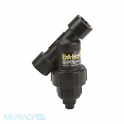 Y Strainer Pipe Size 1/2 in Maximum Pressure at 100 deg F 192 psi Length 5 7/8 in Height 6 in Blow Off Port 1/4 in Screen Material 304 Stainless Steel Mesh Size 40 mesh Housing Material Polypropylene Includes Screen Yes Maximum Pressure 192 at 100 Degrees F 225 psi Maximum Temperature 150 Degrees F Micron Rating 400 micron Port 1 Connection Size 1/2 in Port 1 Connection Type NPT Port 1 Gender Female Port 2 Connection Size 1/2 in Port 2 Connection Type NPT Port 2 Gender Female