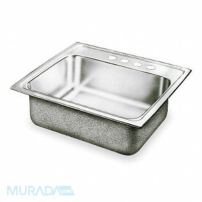 Single Bowl Drop-in Sink Bowl Depth 7 3/4 in Rectangular Bowl Size 21 in x 15 3/4 in Silver Drop-In Drain Opening 3 1/2 in Faucet Hole Dia 1 1/2 in Centerset Faucet Mounting Centers 4 in Lustrous Satin Gauge 18 ga Mounting Location - Faucet Deck Countertop No of Bowls 1 Number of Faucet Holes 4 Overall Height 8 1/8 in Overall Length 25 in Overall Width 22 in Elkay Lustertone Classic Series Stainless Steel Sink Type General Purpose