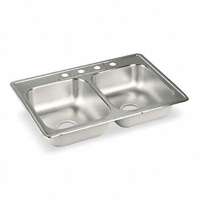 Equal Double Bowl Drop-in Sink Bowl Depth 7 3/4 in Rectangular Bowl Size 13 in x 16 in Silver Drop-In Drain Opening 3 1/2 in Faucet Hole Dia 1 1/2 in Centerset Faucet Mounting Centers 4 in Lustrous Satin Gauge 18 ga Mounting Location - Faucet Deck Countertop No of Bowls 2 Number of Faucet Holes 4 Overall Height 8 1/8 in Overall Length 33 in Overall Width 22 in Elkay Lustertone Classic Series Stainless Steel Sink Type General Purpose