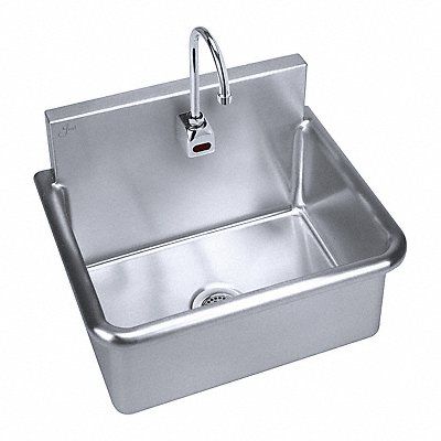 Bathroom Sink ADA Compliance No Back Splash Height 6 in Bowl Depth 10 1/2 in Rectangular Bowl Size 28 in x 20 in CEC Compliant Silver Drain Opening 3 1/2 in Faucet Body Material Brass Faucet Handle Type None Faucet Hole Dia 1 1/4 in Faucet Installation Style Single Hole Sensor Gooseneck Satin Flow Rate 2 gpm Gauge 14 ga Mounting Location - Faucet Splash Mounting Type - Sinks Wall No of Bowls 1 Number of Faucet Holes 1 Number of Stations 1 Overall Height 16 1/2 in