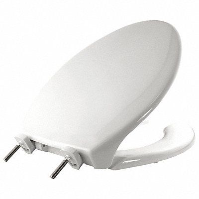 Toilet Seat For Bowl Shape Elongated Toilet Seat Type Standard Front Type Open Includes Cover Yes Color White Hinge Material Plastic with Stainless Steel Posts Hinge Design External Check Hinge Seat Height 2 1/4 in Bolt to Seat Front 18 9/16 in