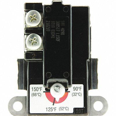 Thermostat SPDT Controller Type Limit Control/Thermostat Throw Single Throw Compatible Grainger Part Number 6E023 6E025 6VD88 6VD90 GVD91 Contact Rating Current @ Voltage 25 A @ 277V 30 A @ 120/240V Maximum Temperature Control 150 Degrees F Minimum Temperature Control 90 Degrees F Wattage @ Voltage 3 600 W @ 120V Compatible Manufacturer Part Number MR105245 MR50245 MR75245 MR85245 MSR50245 For Use With Electric Water Heaters Pilot Duty Power @ Voltage 125 VA @ 120/480V