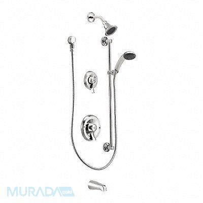 Tub and Shower Trim Kit ADA Compliance Yes Connection Size 1/2 in Faucet Handle Type Lever Fixed Showerhead Flow Rate 1.5 gpm Number of Handles 1 Moen Commercial Posi-Temp T8343 Series Showerhead Function Single Trim Finish Chrome Trim Plate Height 7 in Trim Plate Shape Circle Trim Plate Width 7 in Non Diverter Spout