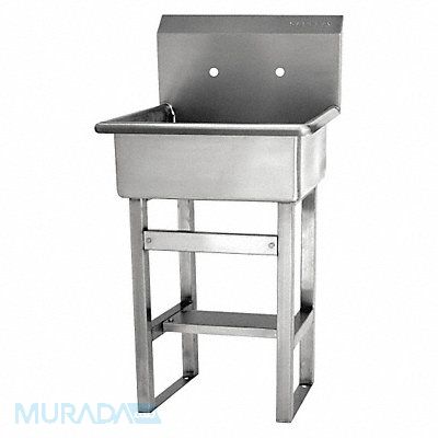 Hand Sink ADA Compliance No Back Splash Height 10 1/2 in Bowl Depth 9 in Rectangular Bowl Size 20 in x 17 in Silver Drain Opening 2 in Faucet Hole Dia 7/8 in Faucet Installation Style Widespread Faucet Mounting Centers 8 in Satin Gauge 16 ga Mounting Location - Faucet Splash Mounting Type - Sinks Floor No of Bowls 1 Number of Faucet Holes 2 Number of Stations 1 Overall Height 46 1/2 in Overall Length 23 in Overall Width 20 1/2 in Sani-Lav Stainless Steel