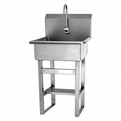 Hand Free Sink ADA Compliance No Back Splash Height 10 1/2 in Bowl Depth 9 in Rectangular Bowl Size 20 in x 17 in Non CEC Compliant Silver Drain Opening 2 in Faucet Body Material Brass Faucet Handle Type None Faucet Hole Dia 7/8 in Faucet Installation Style Single Hole Sensor Gooseneck Satin Flow Rate 2 gpm Gauge 16 ga Mounting Location - Faucet Splash Mounting Type - Sinks Floor No of Bowls 1 Number of Faucet Holes 1 Number of Stations 1 Overall Height 46 1/2 in