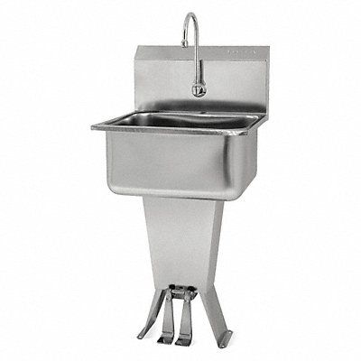 Hand Free Sink ADA Compliance No Back Splash Height 9 1/2 in Bowl Depth 10 in Rectangular Bowl Size 19 in x 16 in CEC Compliant Silver Drain Opening 2 in Faucet Body Material Brass Faucet Handle Type None Faucet Hole Dia 7/8 in Faucet Installation Style Single Hole Dual Foot Pedal Gooseneck Electropolished Flow Rate 0.5 gpm Gauge 18 ga Mounting Location - Faucet Splash Mounting Type - Sinks Floor No of Bowls 1 Number of Faucet Holes 1 Number of Stations 1