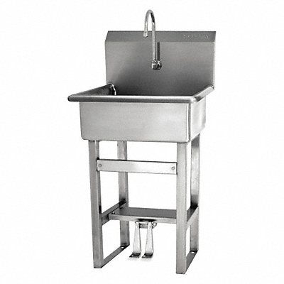 Hand Sink ADA Compliance No Back Splash Height 10 1/2 in Bowl Depth 9 in Rectangular Bowl Size 20 in x 17 in Silver Drain Opening 2 in Faucet Body Material Stainless Steel Faucet Handle Type None Faucet Hole Dia 7/8 in Faucet Installation Style Single Hole Dual Foot Pedal Gooseneck Satin Flow Rate 0.5 gpm Gauge 16 ga Mounting Location - Faucet Deck Mounting Type - Sinks Floor No of Bowls 1 Number of Faucet Holes 1 Number of Stations 1 Overall Height 46 1/2 in