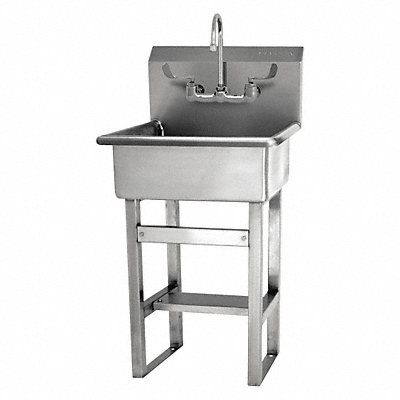 Hand Sink ADA Compliance No Back Splash Height 10 1/2 in Bowl Depth 9 in Rectangular Bowl Size 20 in x 17 in Silver Drain Opening 2 in Faucet Body Material Stainless Steel Faucet Handle Type Wristblade Faucet Hole Dia 7/8 in Faucet Installation Style Widespread Faucet Mounting Centers 8 in Dual Manual Handle Gooseneck Satin Flow Rate 0.5 gpm Gauge 16 ga Mounting Location - Faucet Deck Mounting Type - Sinks Floor No of Bowls 1 Number of Faucet Holes 2 Number of Stations 1