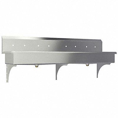 Wash Station ADA Compliance No Back Splash Height 10 in Bowl Depth 8 in Rectangular Bowl Size 77 in x 16 1/2 in Silver Drain Opening 2 in Faucet Hole Dia 7/8 in Faucet Installation Style Widespread Faucet Mounting Centers 8 in Satin Gauge 16 ga Mounting Location - Faucet Splash Mounting Type - Sinks Wall No of Bowls 1 Number of Faucet Holes 8 Number of Stations 4 Overall Height 18 in Overall Length 80 in Overall Width 20 in Sani-Lav Stainless Steel General Purpose