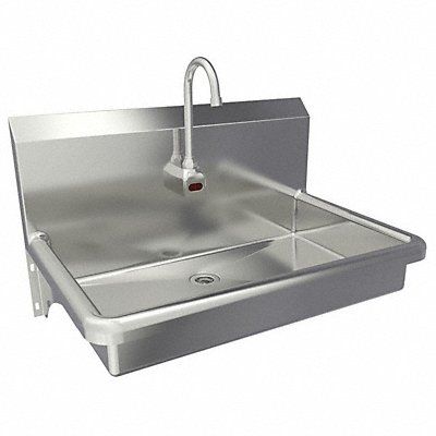 Hands-Free Wall Mounted Sink ADA Compliance Yes Back Splash Height 10 in Bowl Depth 5 in Rectangular Bowl Size 27 in x 16 1/2 in Non CEC Compliant Silver Drain Opening 2 in Faucet Body Material Brass Faucet Handle Type None Faucet Hole Dia 7/8 in Faucet Installation Style Single Hole Sensor Gooseneck Satin Flow Rate 2 gpm Gauge 16 ga Mounting Location - Faucet Splash Mounting Type - Sinks Wall No of Bowls 1 Number of Faucet Holes 1 Number of Stations 1