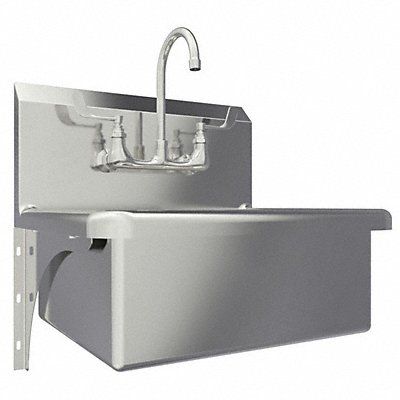 Hand Sink ADA Compliance No Back Splash Height 10 1/2 in Bowl Depth 9 in Rectangular Bowl Size 20 in x 17 in Non CEC Compliant Silver Drain Opening 2 in Faucet Body Material Brass Faucet Handle Type Wristblade Faucet Hole Dia 7/8 in Faucet Installation Style Widespread Faucet Mounting Centers 8 in Dual Manual Handle Gooseneck Satin Flow Rate 2 gpm Gauge 16 ga Mounting Location - Faucet Deck Mounting Type - Sinks Wall No of Bowls 1 Number of Faucet Holes 2