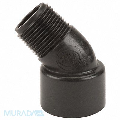 45 Degrees Street Elbow Polypropylene Schedule 80 For Pipe Schedule 80 3/4 in Female NPT 1 1/16 in 14 3/4 in Male NPT 1 1/8 in 300 psi Maximum Operating Pressure -20 Degrees to 150 Degrees F