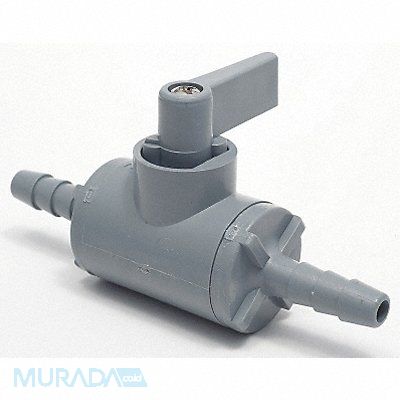 Ball Valve Body Material PVC Body Style Inline 1-Piece Pipe Size 1/4 in Connection Type Barb x Barb Full Port Max Pressure 125 psi CWP Temp Range 20 Degrees to 140 Degrees F Ball Material PVC Seat Material Buna-N Stem Type Self-Lubricating Handle Type Wedge Handle Material PVC Stem Material PVC Body Seal Material Buna-N Hose I.D. 1/4 in