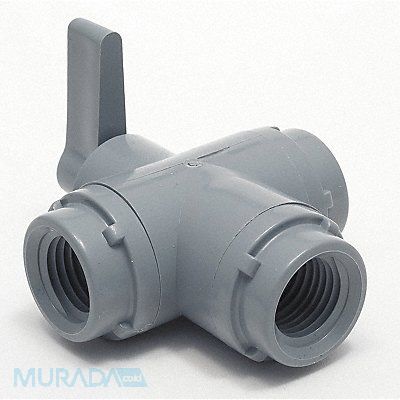 Ball Valve Body Material PVC Body Style 3-Way 1-Piece Pipe Size 1/4 in Connection Type FNPT x FNPT x FNPT Full Port Max Pressure 125 psi CWP Temp Range 20 Degrees to 140 Degrees F Ball Material PVC Seat Material Buna-N Stem Type Self-Lubricating Handle Type Flag Handle Material PVC Stem Material PVC Body Seal Material Buna-N