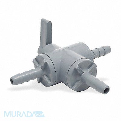 Ball Valve Body Material PVC Body Style 3-Way 1-Piece Pipe Size 1/2 in Connection Type Barb x Barb x Barb Full Port Max Pressure 125 psi CWP Temp Range 20 Degrees to 140 Degrees F Ball Material PVC Seat Material Viton Stem Type Self-Lubricating Handle Type Flag Handle Material PVC Stem Material PVC Body Seal Material FPM Hose I.D. 1/2 in