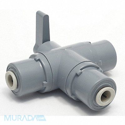 Ball Valve Body Material PVC Body Style 3-Way 1-Piece Pipe Size 3/8 in Tube Size 3/8 in Connection Type Push Full Port Max Pressure 125 psi CWP Temp Range 20 Degrees to 140 Degrees F Ball Material PVC Seat Material Viton Stem Type Self-Lubricating Handle Type Flag Handle Material PVC Stem Material PVC Body Seal Material FPM