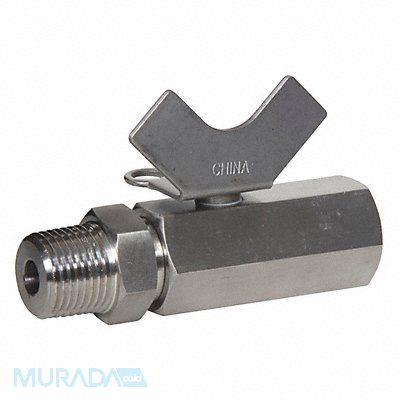 Ball Valve Body Material 316 Stainless Steel Body Style Inline 2-Piece Pipe Size 3/8 in Connection Type FNPT x MNPT Full Port Max Pressure 1 000 psi CWP Max Steam Pressure 150 psi WSP Temp Range -36 Degrees to 368 Degrees F Ball Material 316 Stainless Steel Seat Material PTFE Stem Type Blowout Proof Handle Type Butterfly Handle Material Stainless Steel Stem Material Stainless Steel