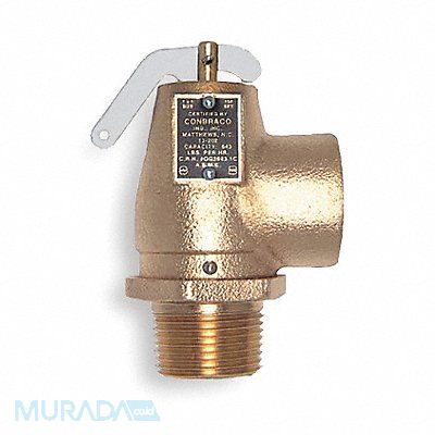 Safety Relief Valve Body Material Cast Bronze Inlet Type MNPT Outlet Type FNPT Inlet Size 3/4 in Outlet Size 3/4 in Factory Set Pressure 15 psi Pressure Range 5 to 15 psi 475 000 BtuH Disc Material EPDM Overall Height 3 11/16 in Application Low Pressure Steam Heating and Supply Boilers Overall Length 2 5/6 in Seat Material EPDM Spring Material Stainless Steel Temp Range 0 Degrees to 250 Degrees F Test Lever Yes Standards ASME Section IV CRN