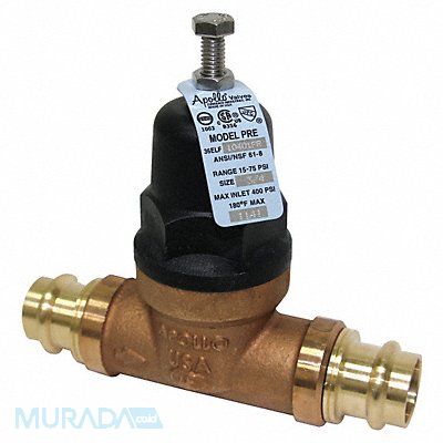 Water Pressure Reducing Valve Valve Type High Capacity Strainer Yes Material Lead Free Bronze Pipe Size 3/4 in Preset Pressure Settings 50 psi Pressure Adjustment Range 15 to 75 psi Connection Type Press Height 4 3/4 in Length 5 25/32 in Max Temp 180 Degrees F Max Pressure 250 psi Standards Annex F G ARRA ASSE 1003-2009 CSA B356 NSF 372 NSF/ANSI 61-G