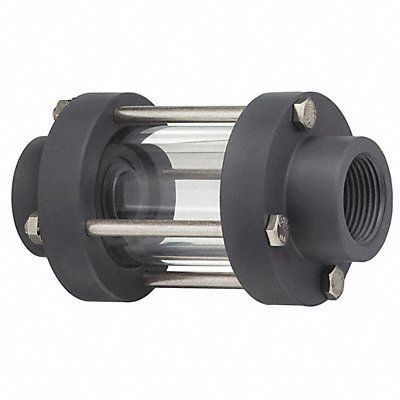 Single Wall Sight Flow Indicator Pipe Size 3/4 in Connection Type FNPT Connection Material PVC Sight Material Acrylic Sight Length 2 1/4 in Overall Length 4 3/4 in Max Pressure 140 psi Temp Range 32 Degrees F to 140 Degrees F Viton Seal Material Stainless Steel Bolt Material
