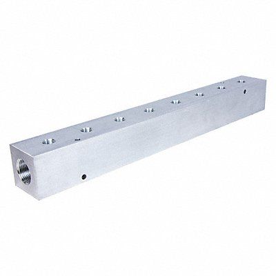 Manifold Flow Direction Inline For Fluid Type Fluid Gas Inlet Connection Gender Female Inlet Connection Size 1 in Inlet Connection Type NPT Manifold Material Aluminum Manifold Material Finish Not Applicable Manifold Material Grade 6061 Maximum Operating Pressure 3 000 psi Maximum Operating Temperature 200 Degrees F Minimum Operating Temperature -10 Degrees F Number of Inlets 2 Number of Mounting Holes 2 Number of Outlets 8 Outlet Connection Gender Female