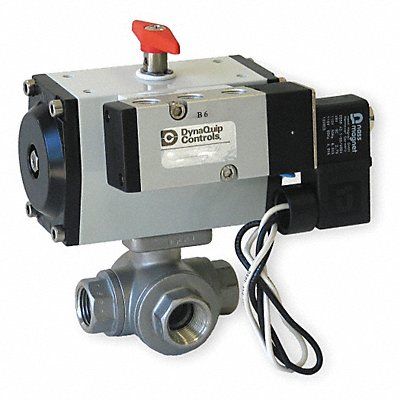 Pneumatic Actuated Ball Valve Body Material Stainless Steel Body Style Three-Way Valve Structure 1-Piece Pipe Size 2 in Connection Type FNPT Standard L Port Max Pressure 125 psi Steam 800 psi CWP Required Pressure 80 psi Max Inlet Pressure 120 psi Temp Range -4 Degrees to 176 Degrees F Ball Material 316 Stainless Steel Seat Material RTFE Stem Material 316 Stainless Steel Body Seal Material PTFE/Viton Standards NEMA 4X