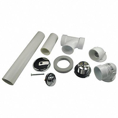 Waste and One Hole Overflow Kit Bath Waste and Overflow Pipe Dia - Drains 1 1/2 in Shape - Drains Round Drain Material Sched 40 PVC Grid Material Stainless Steel Color - Drains Chrome Connection - Drains Solvent Weld Length - Drains 2 1/2 in For Use With Bath Drain with Push and Lift Stopper 0.75 Gauge Standards CSA / IAPMO Includes 1-hole Bath Waste Full Kit Push Lift