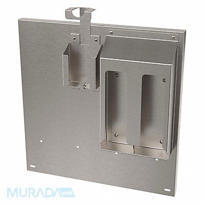 Backsplash Material Stainless Steel Overall Height 20 in Overall Width 19 11/16 in Overall Depth 3 9/16 in Color Silver Includes Single Piece Splash Guard Double Bay C-Fold Paper Towel Holder Adjustable Soap Caddy Mounting Hardware