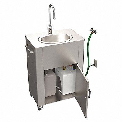 Portable Hand Washing Station ADA Compliance No Bowl Depth 6 in Oval Bowl Size 14 1/2 in x 9 1/2 in Silver Faucet Body Material Stainless Steel Faucet Handle Type None Sensor Gooseneck Satin Flow Rate 0.5 gpm For Use With Water Temperature Cold and Hot Water Fresh Water Capacity 0 gal Gray Water Capacity 6 gal Mounting Location - Faucet Deck Mounting Type - Sinks Floor No of Bowls 1 Number of Faucet Holes 1 Number of Stations 1 Overall Height 36 3/4 in Overall Length 25 in