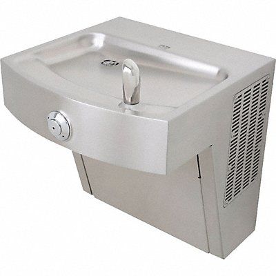 Single Drinking Fountain Station Type Single Fountain Fountain Actuation Front Push Button Includes Water Filter No ADA Compliant Yes Cooling Capacity 8 gph @ 50 Degrees F Housing Color Silver Housing Finish Satin Overall Depth 18 1/2 in Overall Width 18 1/2 in Mounting Location Wall Surface Mount Bi-Level Field Adjustable No Includes Pet Bowl No Refrigeration Refrigerated Power Source Electric Corded Vandal Resistant No