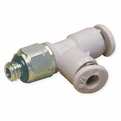 Swivel Side Tee Application Air Color Gray Fitting Side A Connection Type Push-to-Connect Fitting Side B Connection Type Push-to-Connect Fitting Side C Connection Type MNPT Includes Pre-Applied Thread Sealant Yes Fitting Side C Pipe Size 1/8 in Fitting Side A Tube Outer Diameter 1/8 in Fitting Side B Tube Outer Diameter 1/8 in Fitting Material Brass (Threaded Body) PBT (Body) Maximum Operating Pressure 150 psi Maximum Operating Temperature 140 Degrees F Specific Fitting Shape Tee