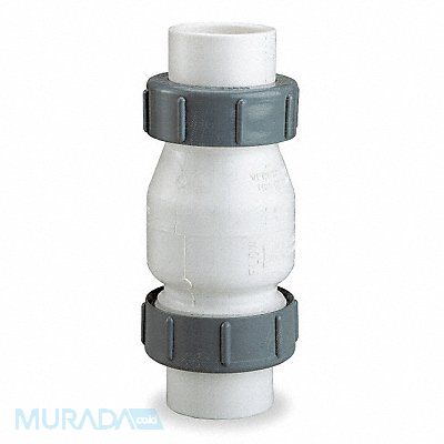 Item - Check Valves Check Valve Flow Design Single Mechanism and Body Design Inline True Union Body Material - Valves PVC Pipe or Tube Size 1 1/2 in Connection Type Socket x Socket Mounting Orientation Vertical Max Water Pressure - Valves 125 psi Max Steam Pressure - Valves Not Rated Application - Valves General Purpose Length 8 in Width 3 5/32 in Overall Height 3 5/32 in