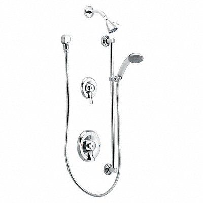 Showerhead Kit ADA Compliance Yes Non CEC Compliant Connection Size 1/2 in NPT Face Shape Circle Faucet Handle Type Lever Fixed Showerhead Flow Rate 2.5 gpm Handheld Showerhead Flow Rate 2.5 gpm Handheld Showerhead Thickness 3 5/16 in Handheld Showerhead Width 3 5/16 in Handle Length 3 7/16 in Number of Handles 2 Moen Commercial Series Shower Connection Type 1/2 in Male NPSL Shower Valve Type Pressure Balancing Showerhead Function Single Showerhead Material Metal