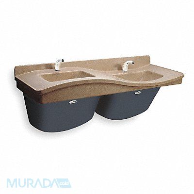 Wash Station ADA Compliance Yes Back Splash Height 3 3/4 in Bowl Depth 6 in Rectangular Bowl Size 23 7/8 in x 17 3/4 in Non CEC Compliant Riverstone Drain Opening 1 1/2 in Faucet Body Material Brass Faucet Handle Type None Faucet Hole Dia 1 1/4 in Faucet Installation Style Single Hole Sensor Mid Arc Unfinished Flow Rate 1.5 gpm Mounting Location - Faucet Deck Mounting Type - Sinks Wall No of Bowls 2 Number of Faucet Holes 2 Number of Stations 2 Overall Height 17 in