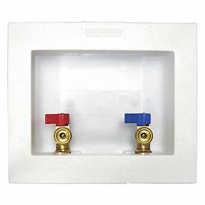 Outlet Box Ice Maker Inlet Connection PEX 1807 Box Width 5-3/4 in Box Height 4-7/8 in Box Depth 3-1/2 in Faceplate Width 8-1/4 in Faceplate Height 7-5/16 in Drain Location No Drain Valve Connection 1/4 in Turn Material of Construction Brass Standards UPC Includes Valve and Locknut Compliance NSF 61-G and Federal Law 111-380
