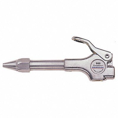 Air Gun Thumb-Lever Number of Nozzles Included 1 Nozzle Length 7/16 in Nozzle Tip Material Aluminum Nozzle Angle Straight Nozzle Features Safety Tip Nozzle Whisper Jet Air Flow Pattern Focused Sound Level 89 dB OSHA Pressure Compliant Yes Output Thrust 0.9 lbf Body Material Aluminum Air Inlet Size 1/4 in Air Inlet Gender Female Air Inlet Type NPT