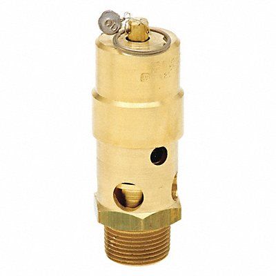 Air Safety Valve Soft Seat (M)NPT Inlet (In.) 1 1/4 in Preset Setting (PSI) 275 psi 2 195 cfm Rated CFM @ Set Pressure Max Temp (F) 250 Degrees F Brass Body Material Silicone Seal Stainless Steel Spring Brass Seat Silicone O-Ring Standards ASME CRN NATIONAL BOARD Compressed Air Safety Relief Very High Flow