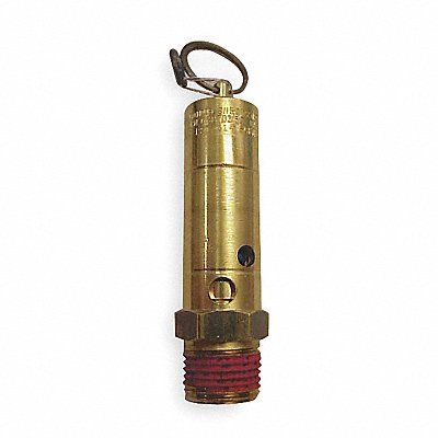 Air Safety Valve Hard Seat (M)NPT Inlet (In.) 1/2 in Preset Setting (PSI) 150 psi 314 cfm Rated CFM @ Set Pressure Max Temp (F) 400 Degrees F Brass Body Material Stainless Steel Seal Stainless Steel Ball Stainless Steel Spring Brass Seat Vibra Seal Thread Coating Standards ASME CRN NATIONAL BOARD Compressed Air Safety Relief High Temp