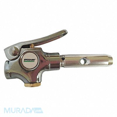 Air Gun Thumb-Lever Number of Nozzles Included 1 Nozzle Length 2 1/4 in Nozzle Tip Material Aluminum Nozzle Angle Straight Nozzle Features Safety Nozzle Air-Shield Air Flow Pattern Focused Sound Level 104 dB OSHA Pressure Compliant Yes Output Thrust 0.1 lbf Body Material Aluminum Air Inlet Size 1/4 in Air Inlet Gender Female Air Inlet Type NPT