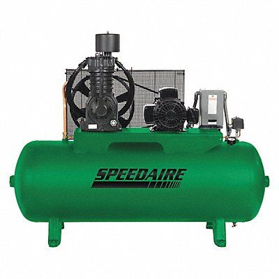 Electric Air Compressor Lubrication Type Splash Lubricated Air Tank Style Horizontal Number of Stages 2 Output Power 7.5 hp Free Air Flow Rate @ Maximum Pressure 24.5 cfm Maximum Operating Pressure 175 psi Air Tank Size 80 gal Input Voltage 208-230V AC 460V AC Phase Three Frequency 60 Hz Compressor Package Type Base Model Pump Style Simplex Pump Type Reciprocating Pump Location Top Mount