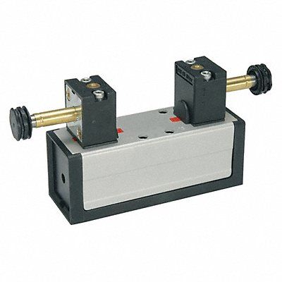 Solenoid Air Control Valve Valve Ways and Positions 4-Way/2-Position Voltage 120V AC Valve Actuator / Return Solenoid / Solenoid ISO Class 5599-1 Max CFM - Valves 4.15 cfm Operational Pressure Range 50 to 145 psi NEMA Classification NEMA 4 Valve Vacuum Range 0 to 28 in Hg Body Style Base Mounted Coefficient of Volume 4.15 Plug-In Electrical Connections Shifting Technology Ceramic Plate Ambient Temp Range 14 Degrees to 145 Degrees F Overall Height 5 1/2 in Overall Length 9 1/4 in