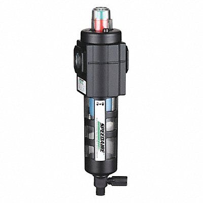 Pneumatic Oil Filter Filter Type Coalescing Air Inlet Size 1/4 in Air Inlet Type NPT Maximum Flow Rate 10.5 cfm Maximum Operating Pressure 150 psi Maximum Operating Temperature 125 Degrees F Overall Width 2 in Overall Height 7 15/16 in Drain Included Yes Filter Bowl Material Polycarbonate Drain Type Manual Series Compact Differential Pressure Indicator Included No Air Flow Direction Left to Right Air Inlet Gender Female Air Outlet Gender Female Air Outlet Size 1/4 in