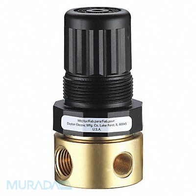 Compressed Air Regulator Air Inlet Size 1/8 in Air Inlet Type NPT Maximum Flow Rate 15 cfm Maximum Operating Pressure 400 psi Maximum Operating Temperature 150 Degrees F Pressure Gauge Included No Adjustment Mechanism Nonrising Overall Width 1 1/2 in Series Miniature Air Inlet Gender Female Air Outlet Gender Female Air Outlet Size 1/8 in Air Outlet Type NPT Body Material Brass