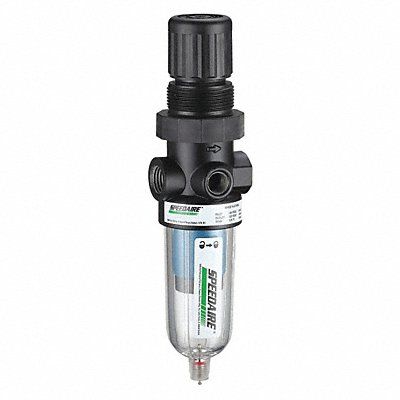 Filter-Regulator Filter Bowl Material Polycarbonate Air Inlet Size 1/8 in Air Inlet Type NPT Maximum Flow Rate 4 cfm Filter Rating 0.01 micron Filter Type Particulate Maximum Operating Pressure 150 psi Drain Type Manual Pressure Gauge Included No Body Material Zinc Overall Width 1 5/8 in Series Miniature Adjustment Location Top Adjustment Mechanism Knob Adjustment Mechanism Material Reinforced Nylon Air Flow Direction Left to Right Air Inlet Gender Female