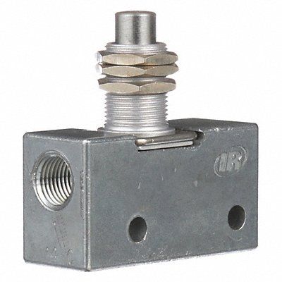 Manual Air Control Valve Valve Ways and Positions 3-Way/2-Position Valve Port Size 1/8 in Connection NPT Valve Actuator / Return Plunger / Spring Max CFM - Valves 7.5 cfm Valve Max Pressure Rating 150 psi Valve Temp Range 32 Degrees to 160 Degrees F Normally Open / Normally Closed Normally Closed Coefficient of Volume 0.2 Overall Length 1 3/4 in Overall Height 2 in Overall Width 11/16 in Manual Air Control Valve