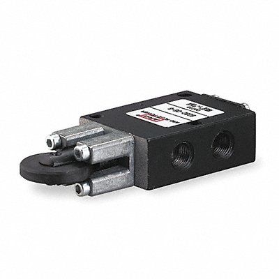 Manual Air Control Valve Valve Ways and Positions 3-Way/2-Position Valve Port Size 1/8 in Connection NPT Valve Actuator / Return Roller Cam / Spring Max CFM - Valves 7.5 cfm Valve Max Pressure Rating 150 psi Valve Temp Range -10 Degrees to 180 Degrees F Normally Open / Normally Closed Normally Closed Coefficient of Volume 0.4 Overall Length 3 23/32 in Overall Height 3/4 in Overall Width 1 1/2 in Series 50 Manual Air Control Valve