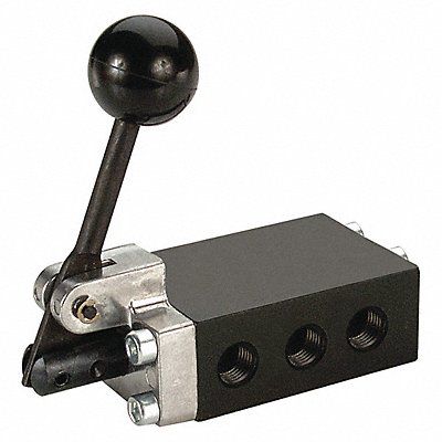Manual Air Control Valve Valve Ways and Positions 4-Way/2-Position Valve Port Size 1/8 in Connection NPT Valve Actuator / Return Lever / Manual Max CFM - Valves 16 cfm Valve Max Pressure Rating 150 psi Valve Temp Range -10 Degrees to 180 Degrees F Coefficient of Volume 0.4 Overall Length 3 15/32 in Overall Height 3 13/16 in Overall Width 1 1/2 in Series 50 Manual Air Control Valve