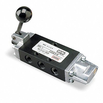 Manual Air Control Valve Valve Ways and Positions 4-Way/2-Position Valve Port Size 1/4 in Connection NPT Valve Actuator / Return Lever / Spring Max CFM - Valves 26 cfm Valve Max Pressure Rating 150 psi Valve Temp Range -10 Degrees to 180 Degrees F Coefficient of Volume 0.7 Overall Length 6 7/32 in Overall Height 3 7/8 in Overall Width 1 3/4 in Series E Manual Air Control Valve